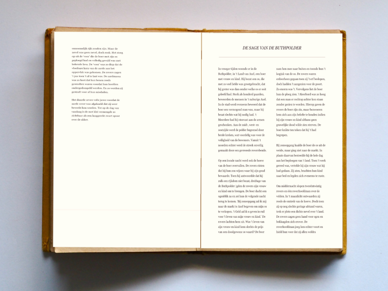 Axel? Maar Axel ligt niet in Vlaanderen, maar in Zeeuws-Vlaanderen. Ik wil altijd alles weten over Zeeuws-Vlaanderen. Het verfomfaaide boekje uit 1952 had op slag mijn volle belangstelling. Terwijl andere kringwinkelklanten schalen en schotels voorzichtig in winkelmandjes legden en fauteuils en bankstellen onzachtzinnig testten, las ik staand tussen de boeken en bakken met dvd’s het hoofdstuk met de titel De sage van de Buthpolder.