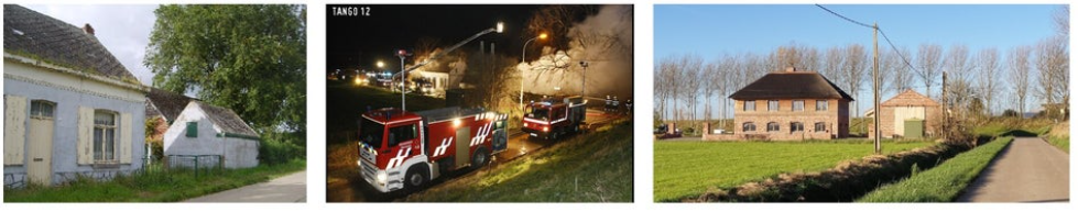 Gustaaf, nee maar, die ken ik! was mijn eerste reactie na het lezen van de tekst. Gustaaf is namelijk de broer van Edmond Spaenhoven, de persoon naar wie ik al heel lang onderzoek doe. En daardoor weet ik ook wat Gustaaf daar in het niemandsland stond te doen. Maar laat me bij het begin beginnen. Toen de fotograaf de foto nam, stond hij bovenop een dijk, met voor zich de Dodendraad en achter zich een alleraardigst pastelblauw boerderijtje. In dat boerderijtje is Gustaaf - zijn geboortejaar is 1892 - opgegroeid. Als je er nu gaat kijken vind je het niet meer, want nadat het vanaf eind 2003 had leeggestaan, brandde het op eerste kerstdag 2007 op meerdere plaatsen tegelijk spontaan af ... Maar eerlijk is eerlijk, ik ben onder de indruk van de huidige bouwactiviteiten.